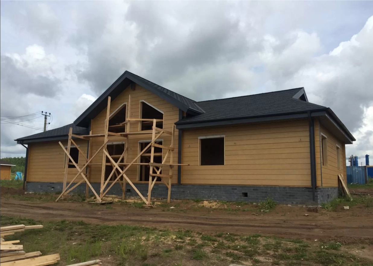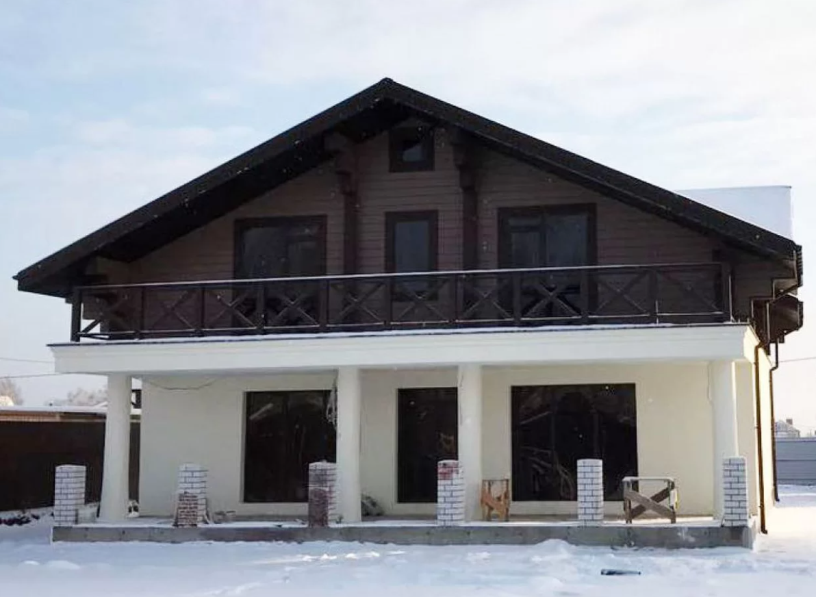 Дача в чеховском стиле под Екатеринбургом. При строительстве был предусмотрен отапливаемый гараж, бассейн во дворе и возможность пристроя летней террасы.